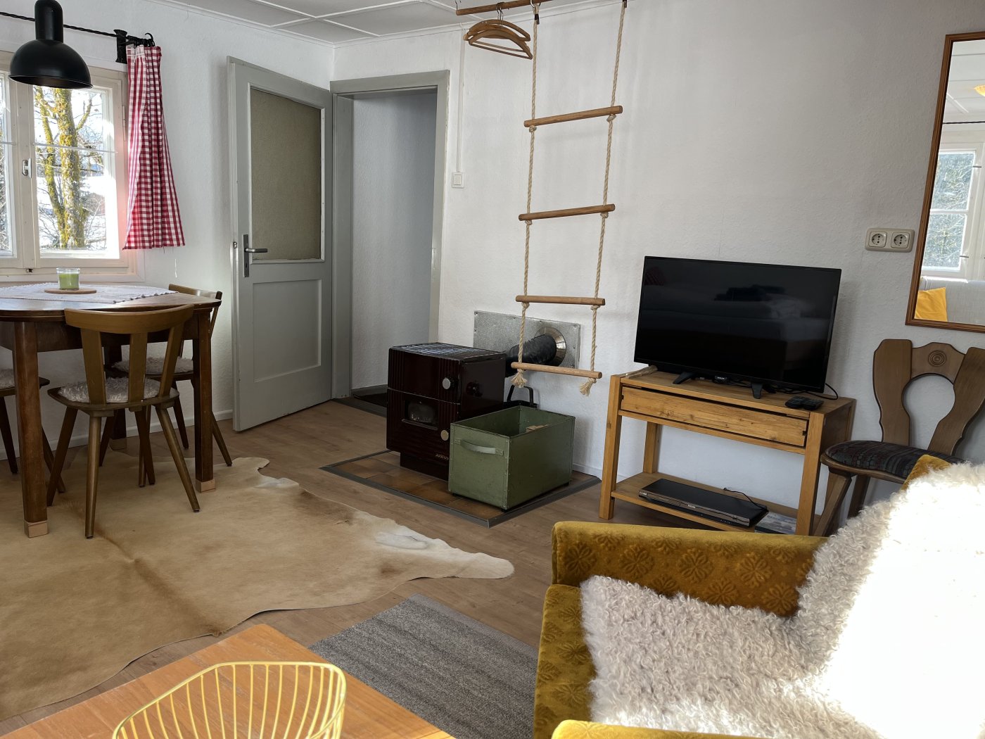 Das Hüttle ist geeignet für 2-4 Personen. Für mehr als 2 Personen wird es kuschelig, da die Aufbettung auf der Schlafcouch (Breite 1,30m) im selben Raum ist. Klein aber fein...