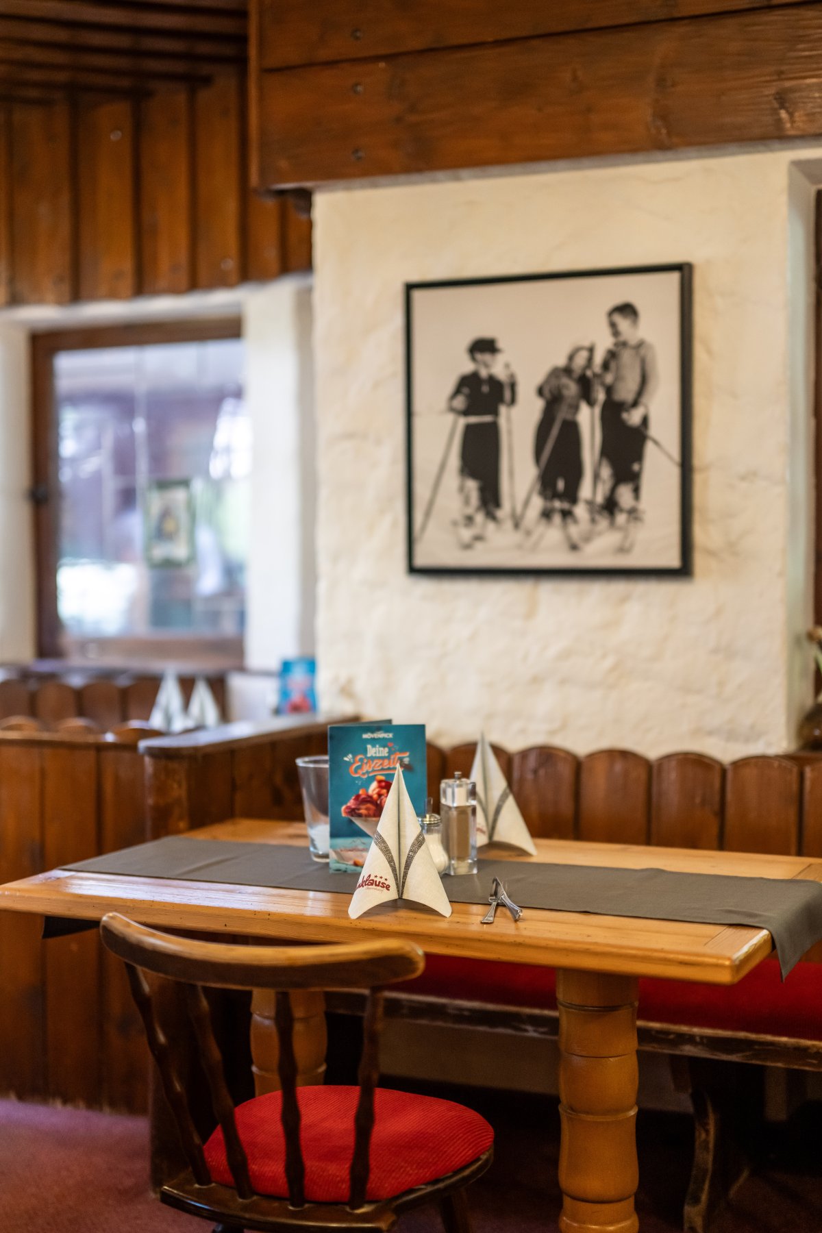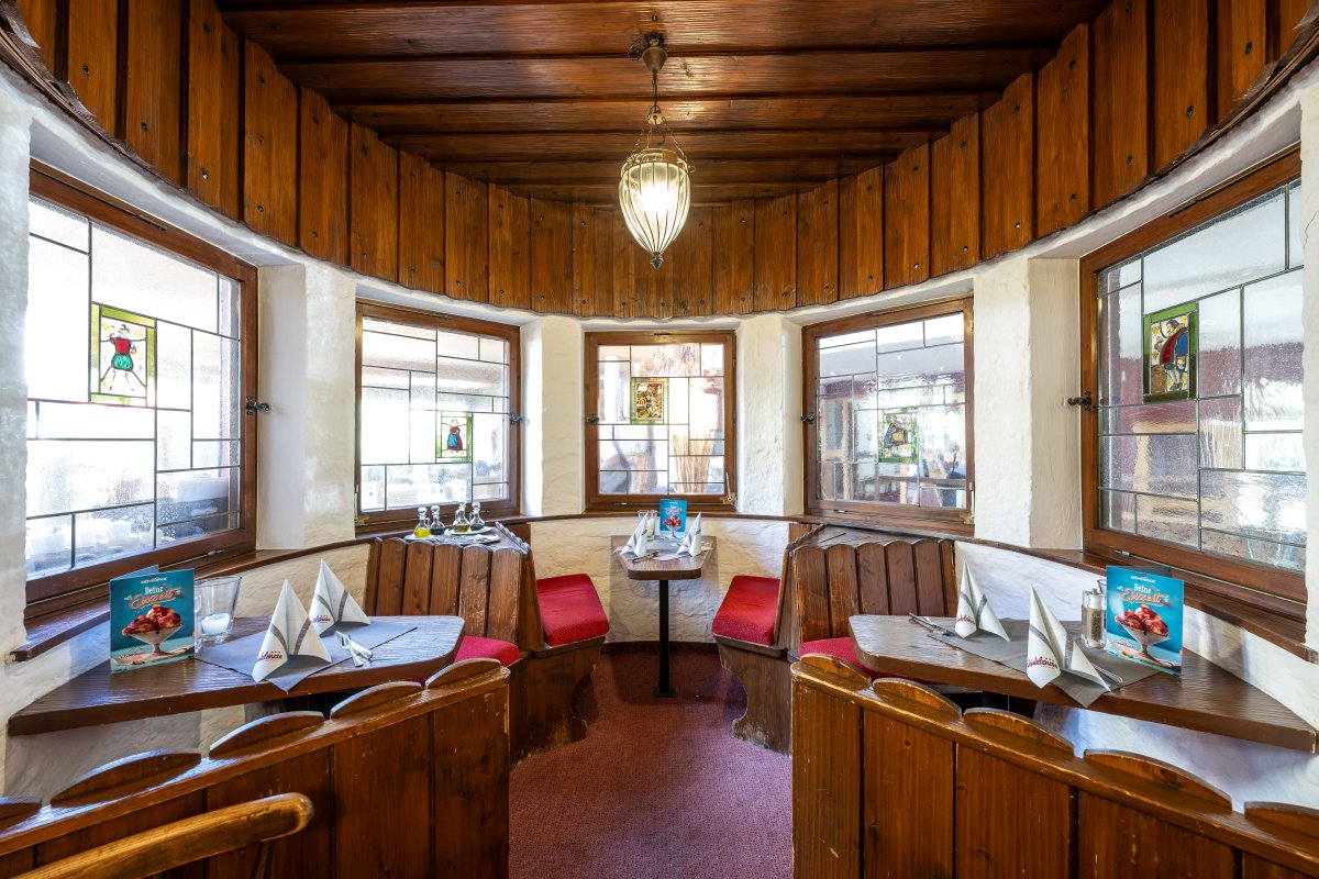 Es ist der urigste Teil des Restaurants mit einem ganz eigenem Charme. Hier versuchen wir die Nostalgie zu bewahren, zum Beispiel durch das originale Buntfensterglas oder die Bänkle im Erker.